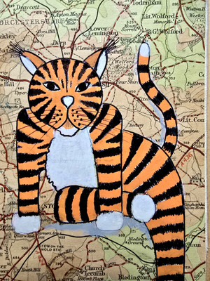 Tiger Travel by Blink Friction Original Art On Vintage Map Acrylic And In Ink