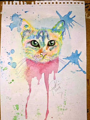 Cute Cat watercolour painting Blink Friction Surplus reuse decoupage crafting
