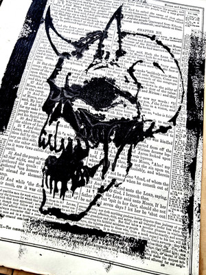 Radical Ephemera Bkack Devil Skull on Manuscript Blink Friction Reclaim Crafts