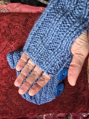 Blue Beanie Matching Fingerless Gloves Artisan Handmade Wool Mix One Size New