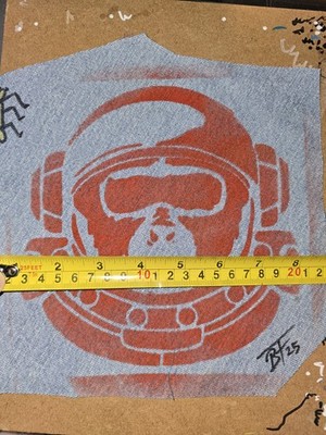 Banksy Stencil Monkey Astronaut Red on Blue Denim Blink Friction Surplus Art
