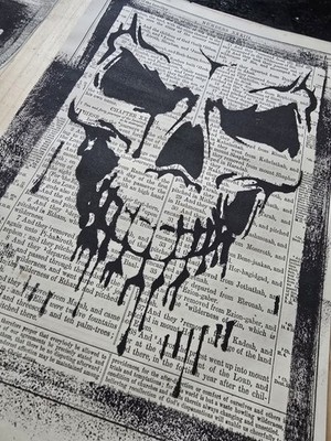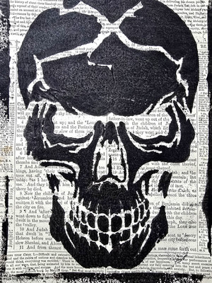 Radical Ephemera Handmade Skull Print Vintage Bible Page Blink Friction Gothic