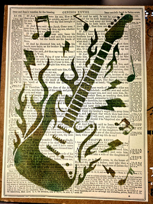 Guitar Stencil on Reclaimed Paper Blink Friction Surplus for Crafting Reuse A4