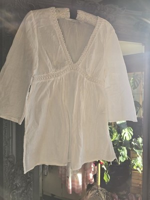 Gorgeous White Cotton Lace Blouse Shirt Size 14 New Look