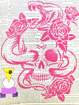 pink Tattoo Skull by Blink Friction [FRIX] Acrylic Radical Ephemera Bible Page